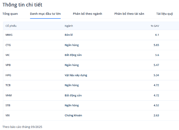 Hiệu suất tháng 9 của nhiều quỹ mở bị ảnh hưởng bởi việc không nắm giữ tỷ trọng cao các cổ phiếu dẫn dắt đà tăng của VN-Index như VIC (+36,3%) và VRE, cùng với áp lực chốt lời ở nhóm Ngân hàng và Dịch vụ tài chính phi ngân hàng do tâm lý thận trọng trước kỳ công bố kết quả nâng hạng.