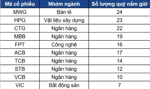 Cổ phiếu nào đang được nhiều quỹ nắm giữ nhất?